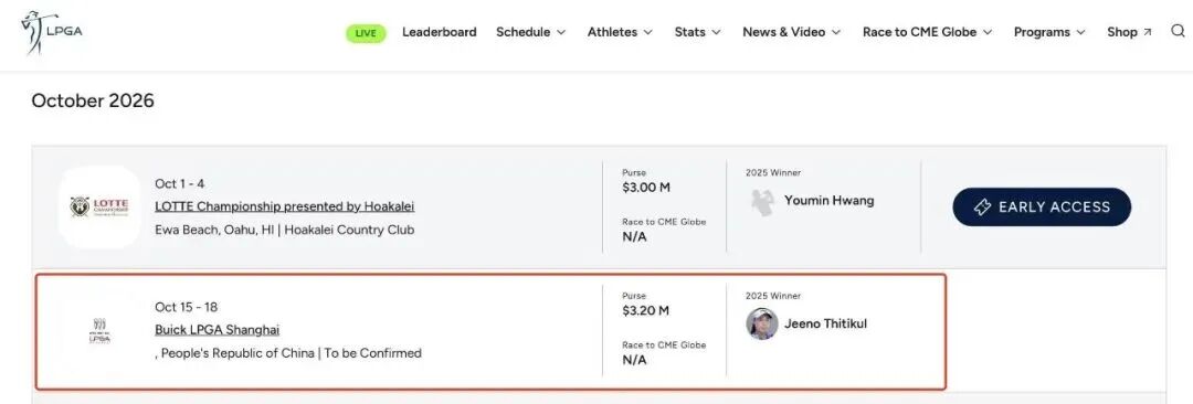 別克LPGA錦標(biāo)賽2026賽程定檔